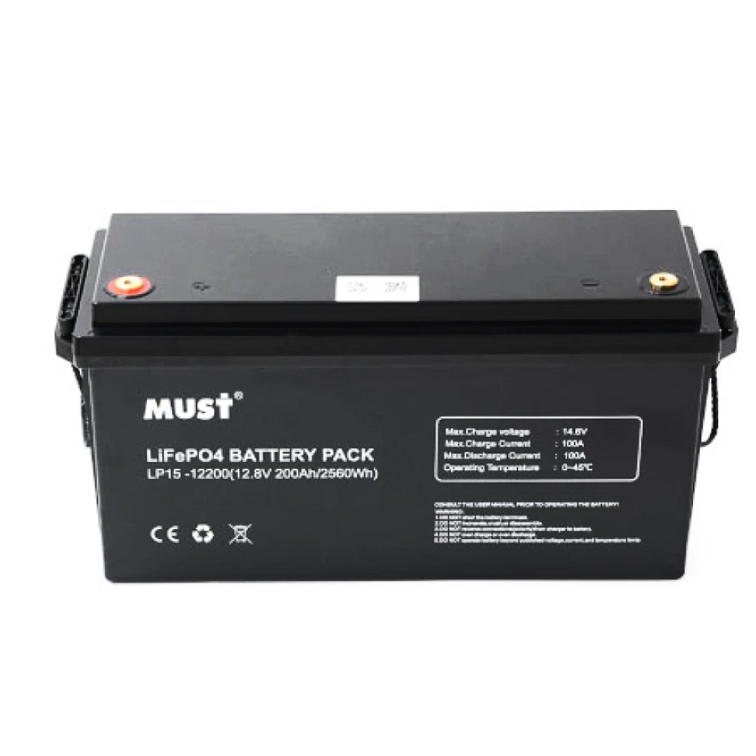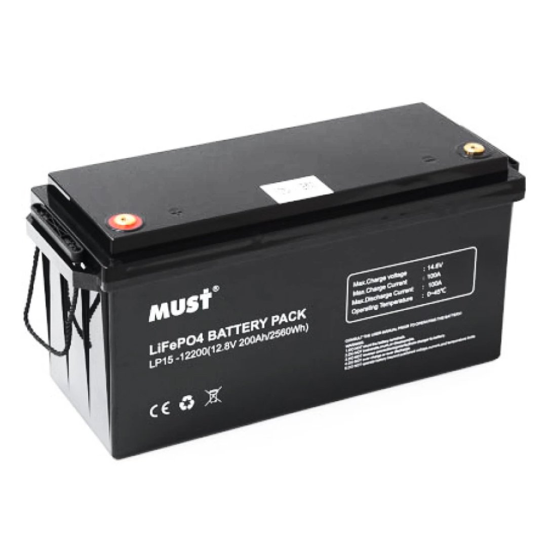 LP15-12200 — це літій-залізо-фосфатна (LiFePO4) акумуляторна батарея на 12.8В 200 Ач (2560 Вт·год) від компанії Must Power, з вбудованою системою керування батареєю (BMS — Battery Management System). Система BMS забезпечує рівномірну зарядку та розрядку, захист від глибокого розряду, перенапруги, перегріву, а також від короткого замикання. Ця батарея оснащена новітніми комірками від компанії EVE, що забезпечує високу якість і надійність акумулятора.